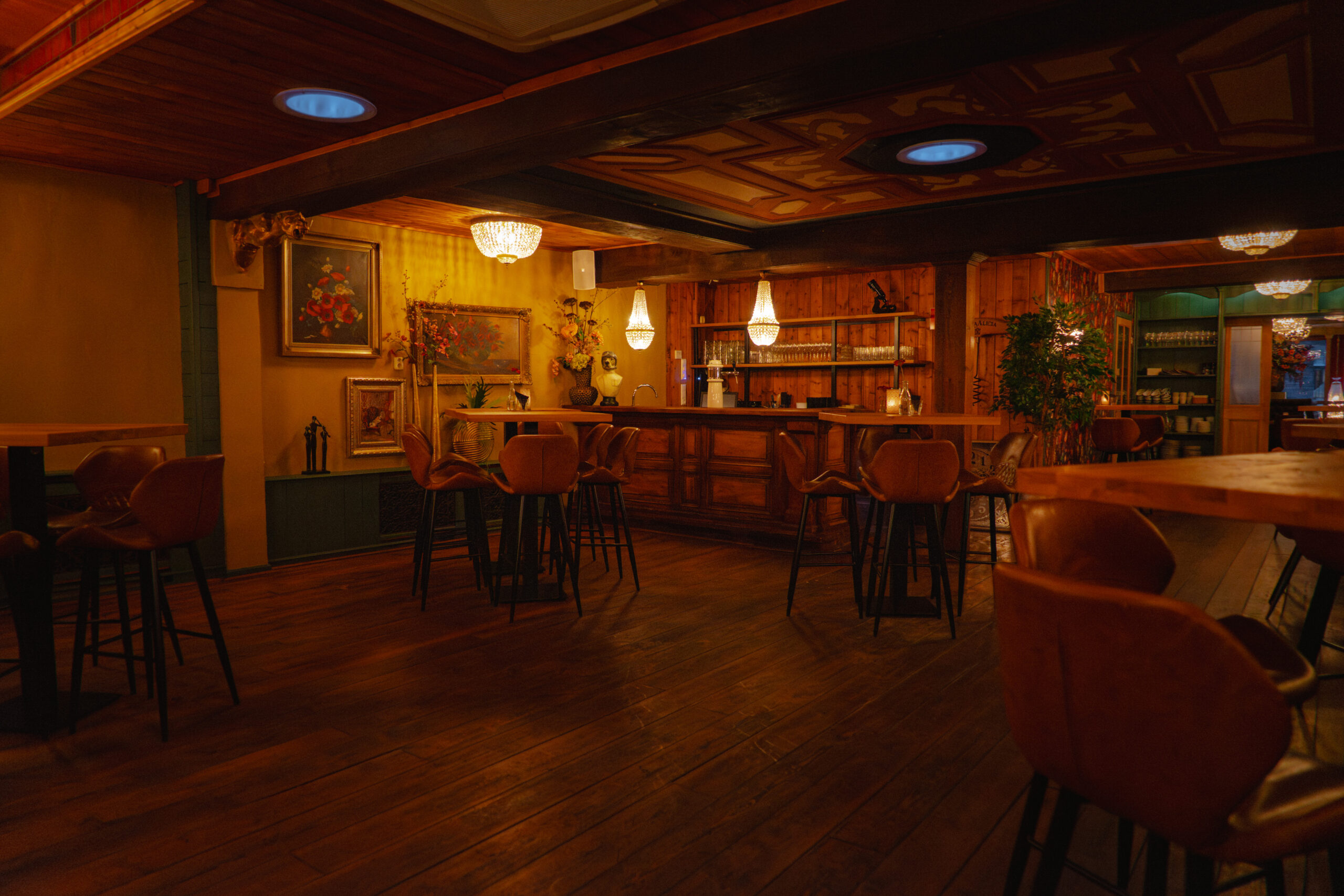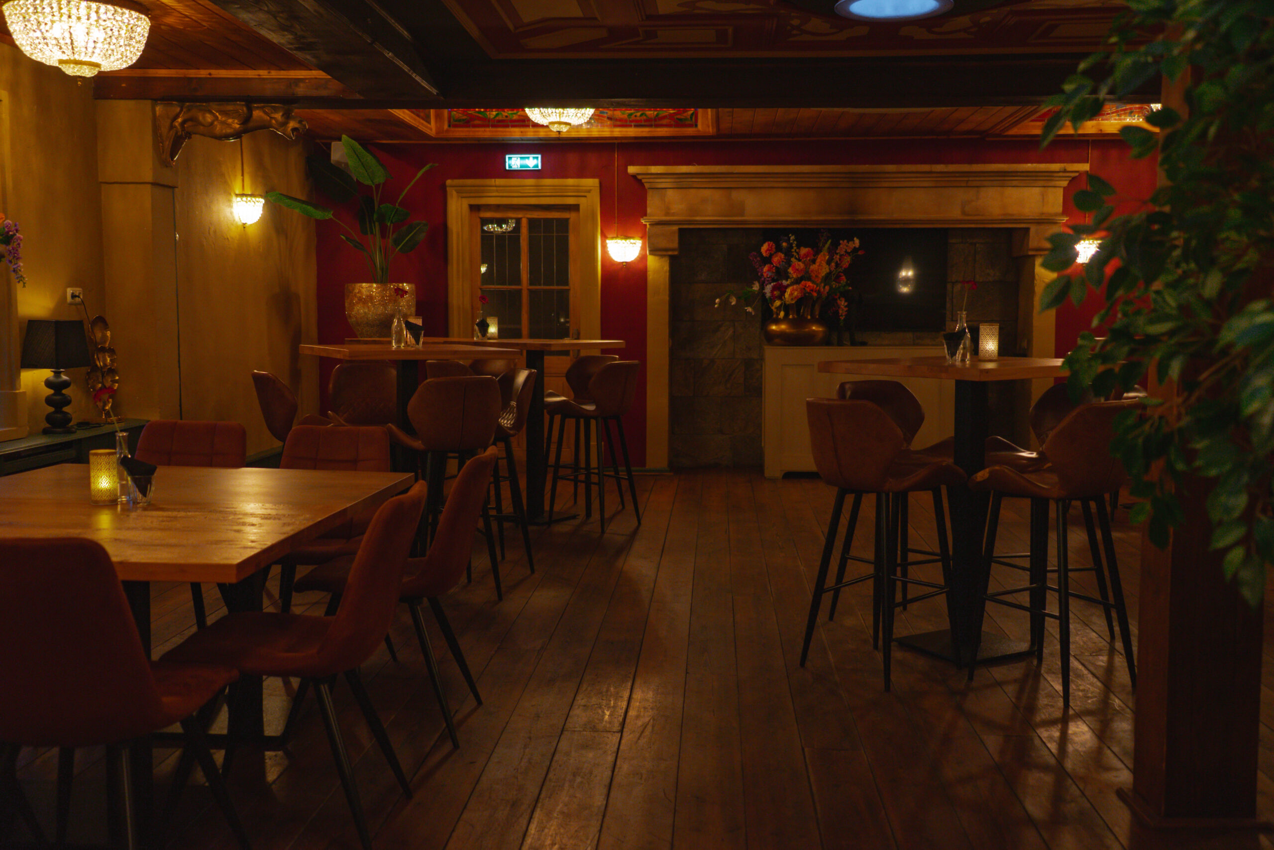 De Heerenkamer biedt ruimte voor 70 personen. Komen er meer dan 50 personen, dan kunt u overwegen de Vide en de Heerenkamer te combineren en de hele bovenverdieping af te huren.
